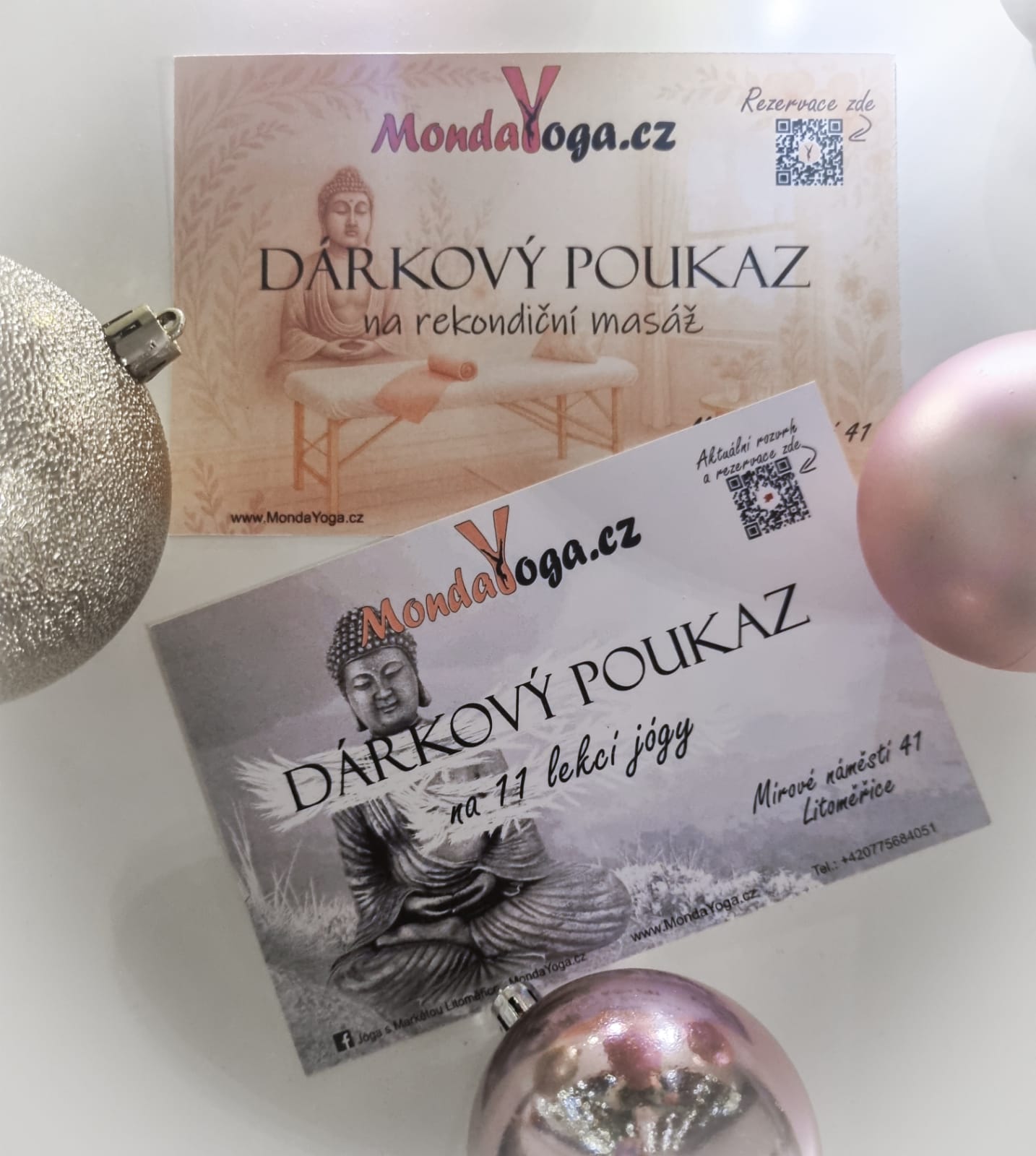 V prodeji jsou stále dárkové poukazy na 11 lekcí jógy za 1800 Kč.